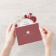 A romantic all-in-one invitation featuring ruby-red roses and soft white florals,