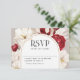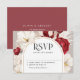 this RSVP card features ruby-red roses and soft white florals in a refined layout.