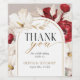 Ruby red and white floral wedding thank you wine label