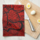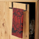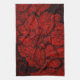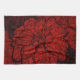 Add a touch of modern elegance to your kitchen with this stylish ruby red kitchen hand towel. This beautiful red kitchen towel features a stunning abstract floral design highlighting the beauty of the dahlia flower in a monochromatic colour palette. A bold bright red dahlia is the macro focal point of this maximalist design, framed by black dahlia flowers on a patterned background of ruby red, burgundy and black floral swirls; a layered design that gives depth of perspective with highlights and shadows.