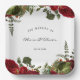 Ruby Red Botanical Peonies Wedding Paper Plate