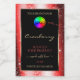 The design features a bright shimmering ruby red glitter frame with tiny glitzy stars on a plain black background.