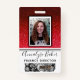 Faux ruby red and black glitter sparkles delightfully behind a photo template with black and white frame. Easily update the name and professional job title for each custom employee badge. There is also space for a company logo—delete to leave blank. Backside features more faux glitter and an image template perfect for employee bar codes. Available in many other styles and colours.