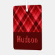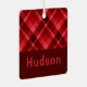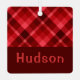 A monogrammed square metal Christmas tree ornament featuring a beautiful diagonal plaid pattern design in ruby red. Create the perfect customised gift by clicking the “personalised” button to add a name or custom message in the provided template field. Select the “Edit using Design Tool” link to change the font, text size and more.