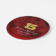 Celebrate your elegant red Quinceañera with a personalised red paper plate. Glitzy gold glitter number 15 is beautiful over red roses background. Elegant red Quinceanera custom party plate is versatile for red rose, ruby red, burgundy red party themes.