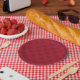 Elegant ruby red snowflake pattern on Christmas party paper plate. (see matching napkins & beer mats etc)