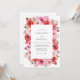 This design features a vibrant array of watercolor roses and peonies in shades of pink and ruby red. The lush botanical arrangement creates a romantic and energetic atmosphere, perfect for a sunny seasonal event. Deep green foliage provides a natural contrast to the warm, blossoming petals, resulting in a sophisticated aesthetic.