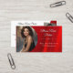 Make an unforgettable impression and shine like a star with custom photo business cards in elegant ruby shine. This customisable business card features space to place your photos on the front and back along with your name, pageant title, platform, personal quote or message, and web address or social media URL.