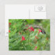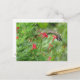 Postcard design features a photograph of a Ruby-throated Hummingbird drinking from Cypress Vine flowers.