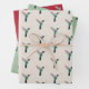 Cute wrapping paper featuring a ruby-throated hummingbird pattern on a beige, green, and red background.