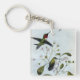 Two male hummingbirds (Archilochus colubris) confront each other over a female perched below them on a thorny shrub in this vintage illustration from a 1922 bird book.