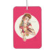 This automobile air freshener features the painting entitled “Ruby Tuesday” by pinup artist, Elizabeth Austin. The original artwork was 20″x30″ acrylic on illustration board. Artwork copyright Elizabeth Austin.