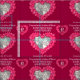40th Ruby Anniversary wine ruby red personalised fabric. Beautiful rubies in hearts on deep red with photo stone template Ruby Wedding Anniversary repeat patterned fabric. Customise with your own recipients name or relatives details and photo. The 40th Anniversary year is traditionally associated with Rubies. Uniquely designed by Sarah Trett.