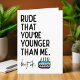Our Rude That You're Younger Than Me Snarky Birthday Card is a great birthday card idea for anyone who loves sarcasm and hilarious birthday cards.