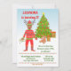 This modern design is perfect for a Christmas, winter, or December little girl - or boy - birthday party. You can pick from three different Christmas beloved characters: Santa Claus, Rudolph, or The Polar Bear. This Christmas traditional character is wearing an ugly sweater, gloves, and a matching Christmas hat. He stands next to a Christmas tree, some presents, and a plush bear. Every Christmas it's the same story: Christmas lights are all tangled up! The back of this invitation has stripes in green, white and red. All text is easy to personalise with your own details. You can pick another font, colour, or size for the text. Get your guests into wearing ugly sweaters with this cute Rudolph birthday party invitation! It will be colourful and fun.