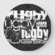 Cool, white rugby football, sport word cloud text pattern template on black and dark grey diagonal stripes, striped background! Great gift for kids, teenager, teens, or adults; boy! Trendy, cute design with different fun grunge white fonts!