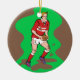 Whimsical illustration of an athletic man competing in a rugby match and running with the rugby ball on a muddy pitch. Image available on various gifts and products.