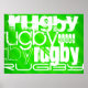 Cool, white rugby football, sport word cloud text pattern bright neon lime green stripestemplate on background! Great gift for kids, teenager, teens, or adults; boy! Trendy, cute design with different fun grunge white fonts!