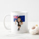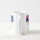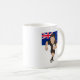cartoon illustration of an All Black Rugby player running with ball with New Zealand flag