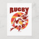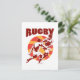 Rugby player running passing tackling retro style postcard