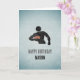 For a guy who plays rugby, a tough and rugged looking design to match! Men and teen boys alike will appreciate this sports themed graphic showing the player gripping the ball. The image has the look of etched and painted metal on galvanised steel, giving it an edgy urban appearance. You can change 'happy birthday' to any other short greeting and update the name to personalise for your rugger mad guy. There's also a customisable message inside.