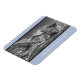 The Colle della Gran San Bernardo (Great Saint Bernard) landscape, in Aosta Valley captures the rugged beauty of the Italian Alps in black and white. The bare rocky mountains dwarf the road over this mountain pass, which crosses the alps and the border from Italy into Switzerland. Great souvenir magnet of your trip to Italy.