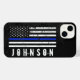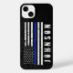 This unique phone case features a thin blue line police flag-themed flag in the centre in a rugged cracked and distressed style. Besides this is a spot for your's or your gift recipient's unique first or last name.