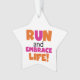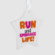 Run and Embrace Life text T-shirts, hoodies, magnets, mousepads, cards, stickers, key chains, buttons, magnets, paper plates and napkins, gift bags, candy tins, watches, and many other items with a bright pink and orange design. These running theme products make great gifts for anyone who runs for fun, runs track, marathons, half marathons, 10Ks, or 5Ks!