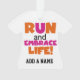 If you love to run, run 5Ks, 10Ks, half marathons, or marathons, you'll love this colourful text design in orange and hot pink that reads Run and Embrace Life! Run and Embrace Life T-shirts, hoodies, magnets, buttons, cards, stickers, key chains, and lots of other items for runners who love a bright, colourful running design!