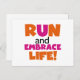 If you love to run, run 5Ks, 10Ks, half marathons, or marathons, you'll love this colourful text design in orange and hot pink that reads Run and Embrace Life! Run and Embrace Life T-shirts, hoodies, magnets, buttons, cards, stickers, key chains, and lots of other items for runners who love a bright, colourful running design!