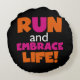 Run and Embrace Life Orange Pink Text Round Cushion