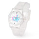 I only have one complaint. I ordered the watch with clear case and strap, and what was sent was white case and strap. I'm going to keep it because 1) it looks very nice in white, and 2) it would take too long to get a replacement made and sent in time for my occasion. Aside from the mix up with the color, the watch does look very good in white. The purple dial is actually sparkly which did not show in the online images. That was a nice surprise. If you like Swatch watches this is very similar to those. It's 33.6mm in diameter, 10.5mm thick, and 40.6mm lug to lug. Stainless steel case back says 3ATM/30m WR, so no swimming or showering or submerging this one. If you like Woodstock, this is a great choice.