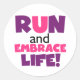 If you love to run, run 5Ks, 10Ks, half marathons, or marathons, you'll love this colourful text design in purple and pink that reads Run and Embrace Life! Run and Embrace life T-shirts, mugs, bags, cards, stickers, key chains, mousepads, iPhone cases, magnets, and much more!