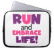 If you love to run, run 5Ks, 10Ks, half marathons, or marathons, you'll love this colourful text design in purple and pink that reads Run and Embrace Life! Run and Embrace life T-shirts, mugs, bags, cards, stickers, key chains, mousepads, iPhone cases, magnets, and much more!