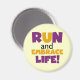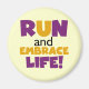 If you love to run, run 5Ks, 10Ks, half marathons, or marathons, you'll love this colourful text design in purple and yellow that reads Run and Embrace Life! Run and Embrace Life T-shirts, hoodies, magnets, buttons, cards, stickers, key chains, and lots of other items for runners who love a bright, colourful running design!