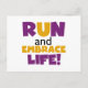 Run Embrace Life Purple Yellow Postcard
