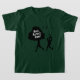 The t-shirt feels and looks great quality, a good thick cotton. It will be a little big for my son, but that means he will be able to wear it and not out grow it too soon. The print was as described on the order when personalised. True size, shape and colour T-shirt- thanks.