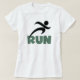 If you are into distance running, whether just training for your first 5K or you've accomplished a 5K, 10K, half-marathon, or marathon, you'll love our RUN T-shirts, hoodies, tank tops, buttons, mugs, keepsakes, and numerous other running apparel and gift items with a black silhouette runner and teal green text.