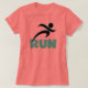 If you are into distance running, whether just training for your first 5K or you've accomplished a 5K, 10K, half-marathon, or marathon, you'll love our RUN T-shirts, hoodies, tank tops, buttons, mugs, keepsakes, and numerous other running apparel and gift items with a black silhouette runner and teal green text.