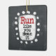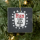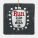 A cute typographic design that says "Run Like You Mean It". It features black and red text on a white rectangle with funky, playful white dots surrounding it, all on a grey background.