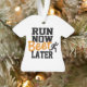 Funny ornament says in black and brown letters "Run Now Beer Later". The back can be changed to your name and year or whatever you like. What a great gift for the runner in your life! Put a SMILE on their faces!
