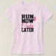 Cute shirt says "RUN NOW Cake LATER" in black and burgundy colours. There is also a cool burgundy runner on the right side. What a Great Gift for the Runner in Your Life! Go Ahead... Put a SMILE on their Face! :)