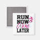 Funny magnet say in black and burgundy letters "RUN NOW Wine LATER" with a pink runner on the side. These would make a great gift for the runner in your life! Go ahead put a SMILE on their face!