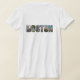 Centred image on front is running woman with words "Run on". On Back word Boston with images of the city in each letter