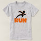 Running T-shirts, mugs, bags, keepsakes, tank tops, hoodies, and other apparel and gifts for runners featuring a black silhouette runner and orange text that reads RUN. These RUN apparel and gift items are great for anyone training for a 5K, anyone who just loves to run, or someone who has already accomplished several marathons!