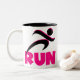 Running T-shirts, mugs, bags, keepsakes, tank tops, hoodies, and other apparel and gifts for runners featuring a black silhouette runner and hot pink text that reads RUN. These RUN apparel and gift items are great for anyone training for a 5K, anyone who just loves to run, or someone who has already accomplished several marathons!