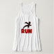 Running T-shirts, mugs, bags, keepsakes, tank tops, hoodies, and other apparel and gifts for runners featuring a black silhouette runner and red text that reads RUN. These RUN apparel and gift items are great for anyone training for a 5K, anyone who just loves to run, or someone who has already accomplished several marathons!