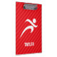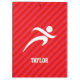 Cool, colourful runner, running, run, marathon runner, sprinter, long distance, track coach, sports design on red, scarlet red diagonal stripes pattern. Perfect gift for baby, toddler, kids, children, teens, or adults! Personalised the design by adding a child's name or custom text with athletic, sporty look sports white font. Visit our store, Birthday Party House, for more great customisable boy and girl products!