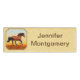 Bay wild mustang horse galloping across a dry grassy field, on a background of golden yellow.