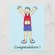 A cartoon man in running gear standing with his arms in the air, with number one on his chest. The word 'Congratulations' is underneath the image.